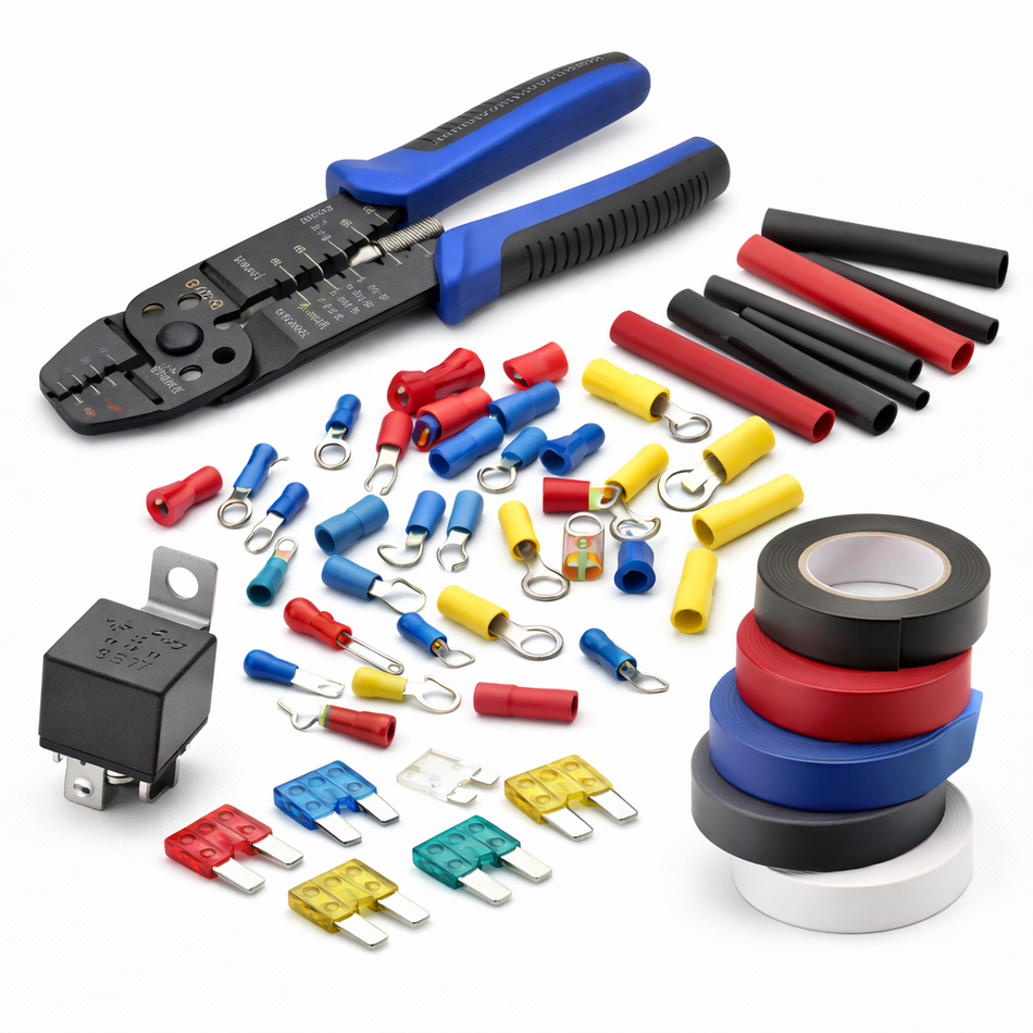 Battery terminals, straps, heat shrink and crimp terminals support reliable electrical flow. Poor connections can cause slow cranking, charging faults and intermittent issues that mimic more expensive failures. Clean mating surfaces and correct crimping/insulation are essential for a lasting fix.