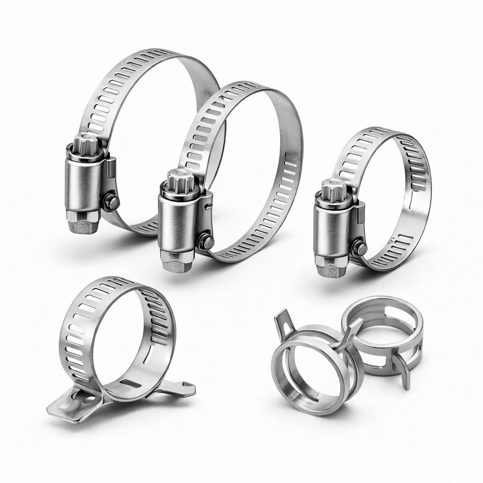 Worm-drive clamps are common and adjustable, while spring-band clamps maintain more constant tension as hoses expand and contract with heat. Specialist clamps may be used on certain coolant and intake connections. The best clamp is the one that matches hose material, spigot design and operating temperature without cutting into the hose.