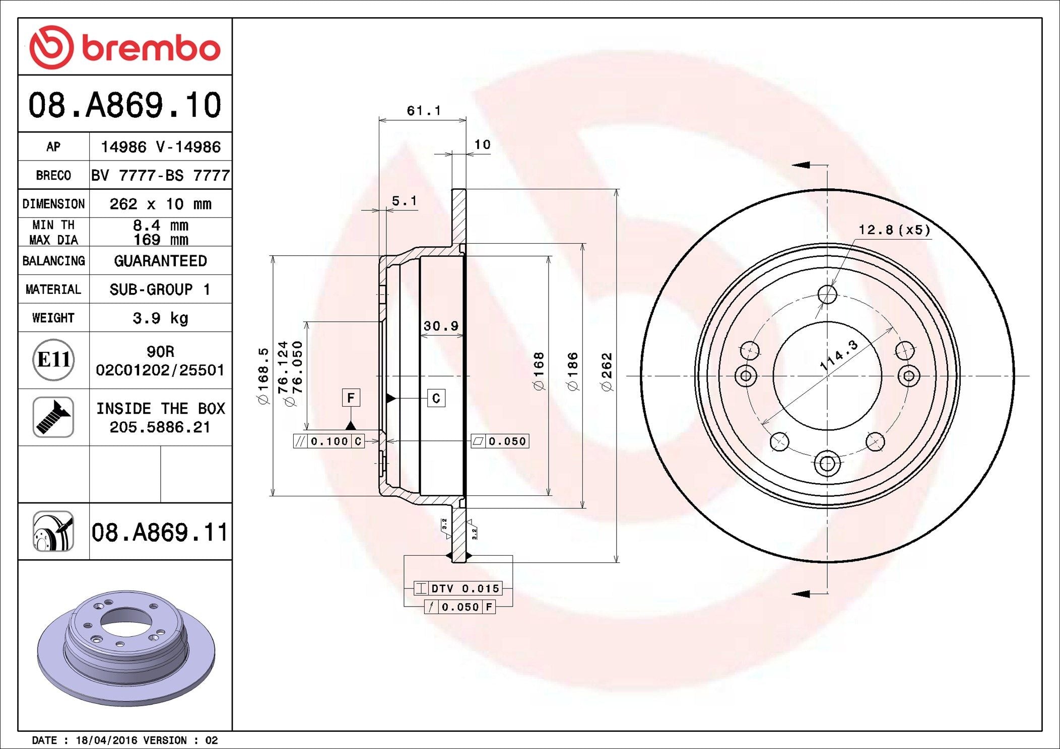 Brake Disc - 08.A869.11
