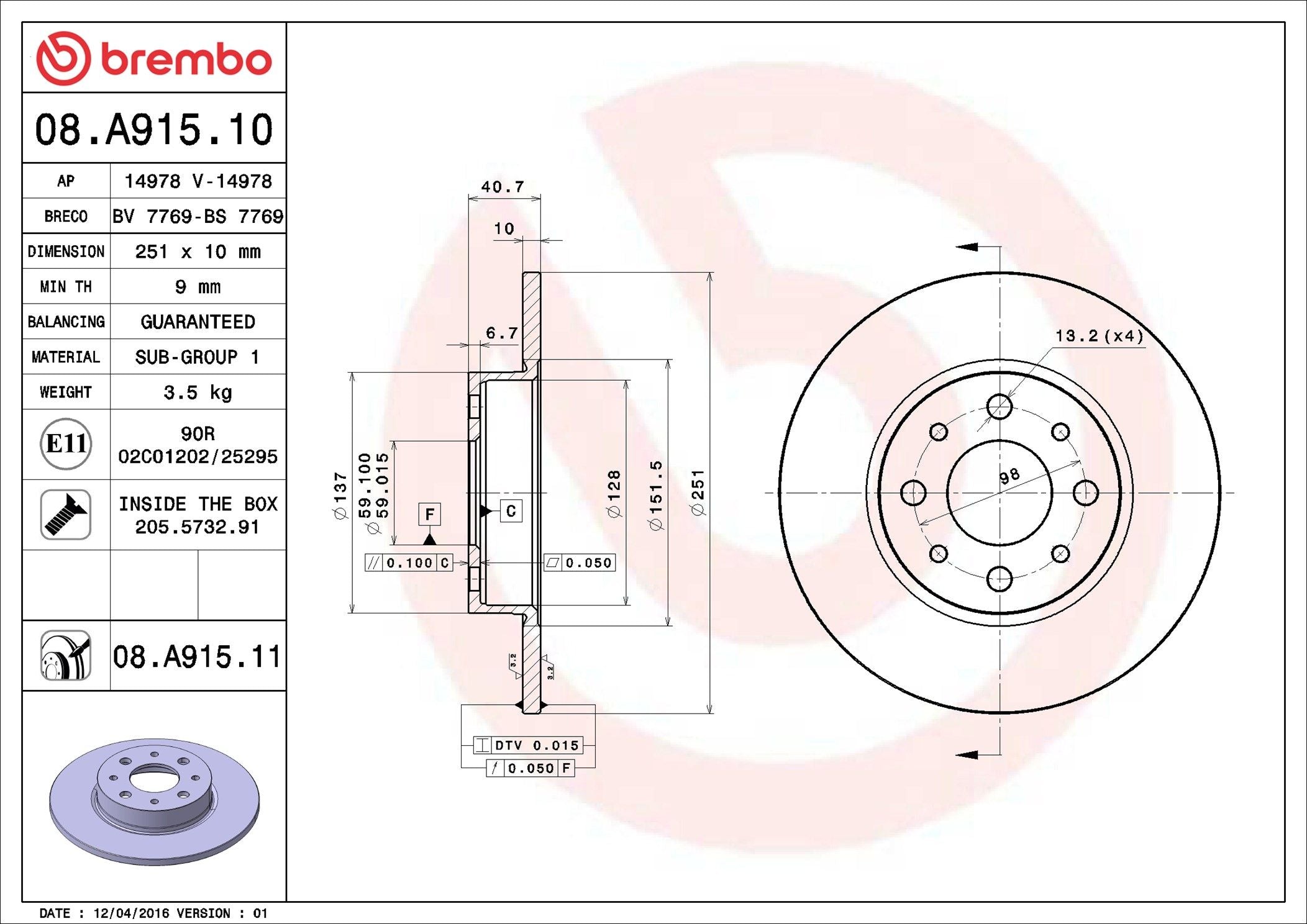 Brake Disc - 08.A915.11