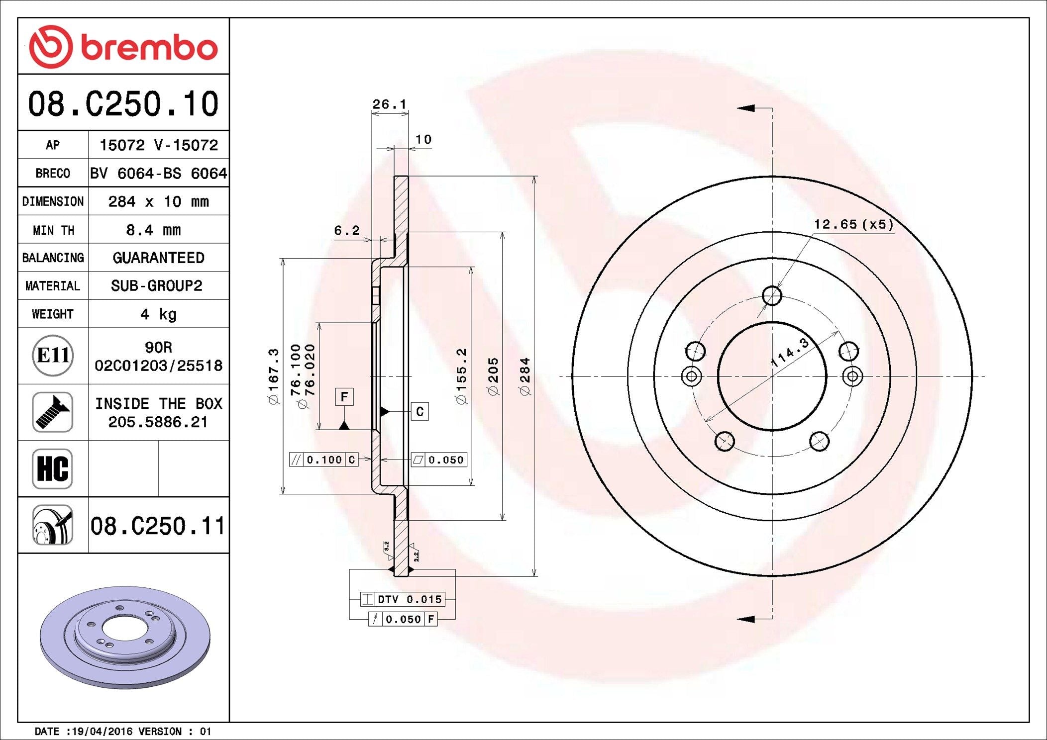 Brake Disc - 08.C250.11