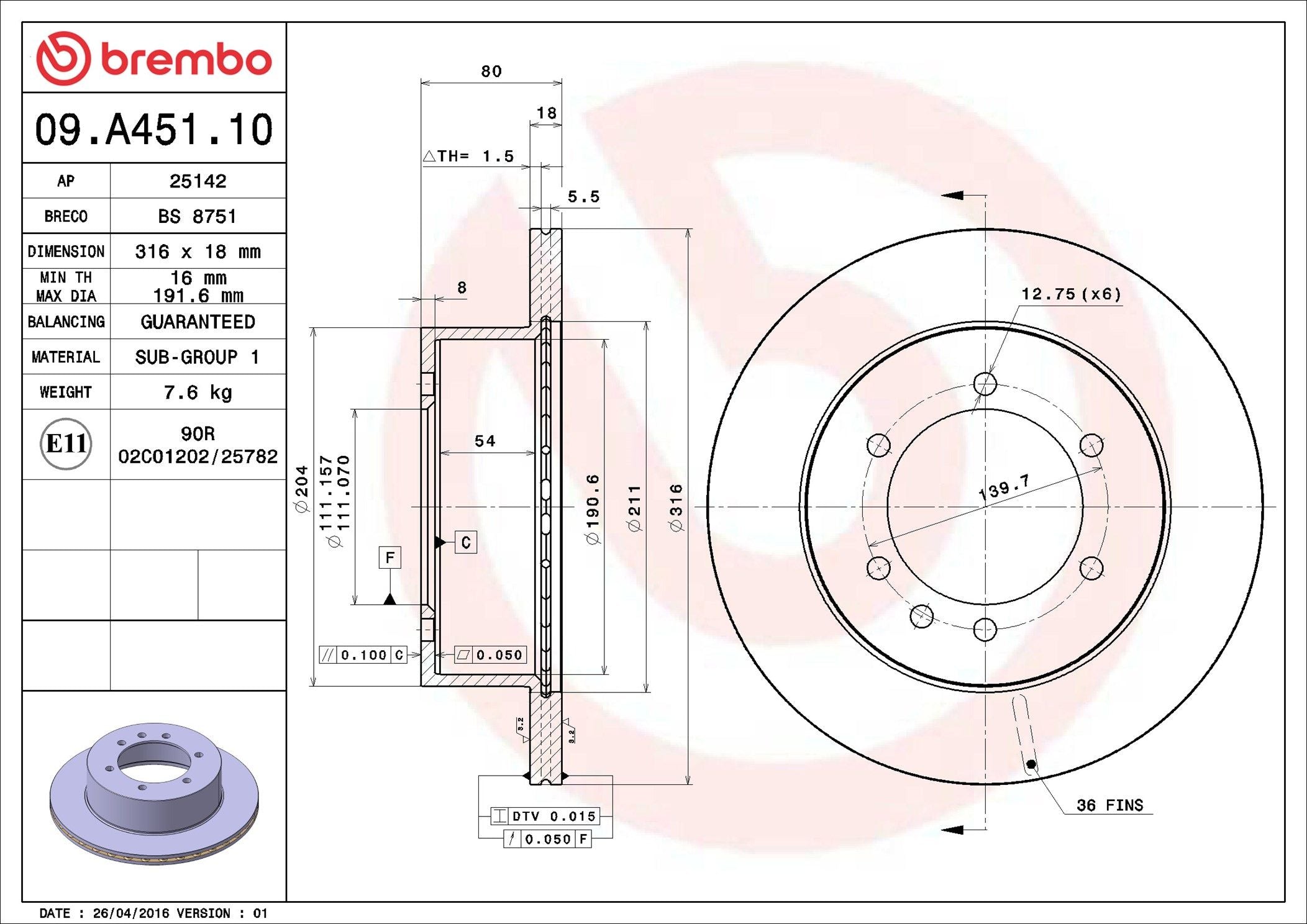 Brake Disc - 09.A451.10