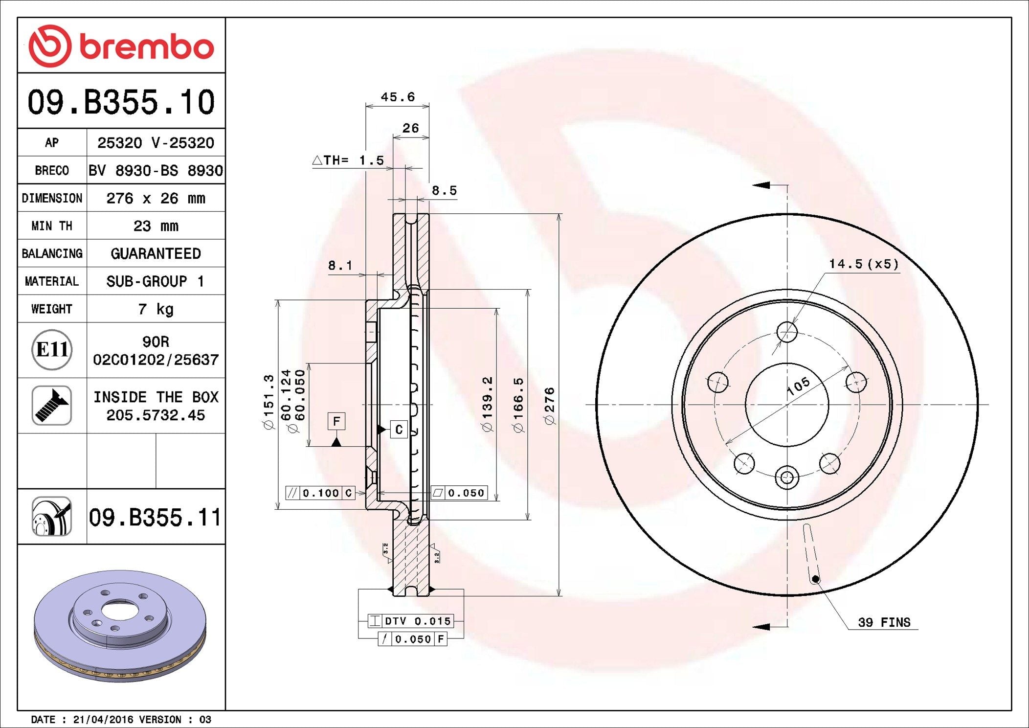 Brake Disc - 09.B355.11