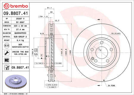 Brake Disc - 09.B807.41