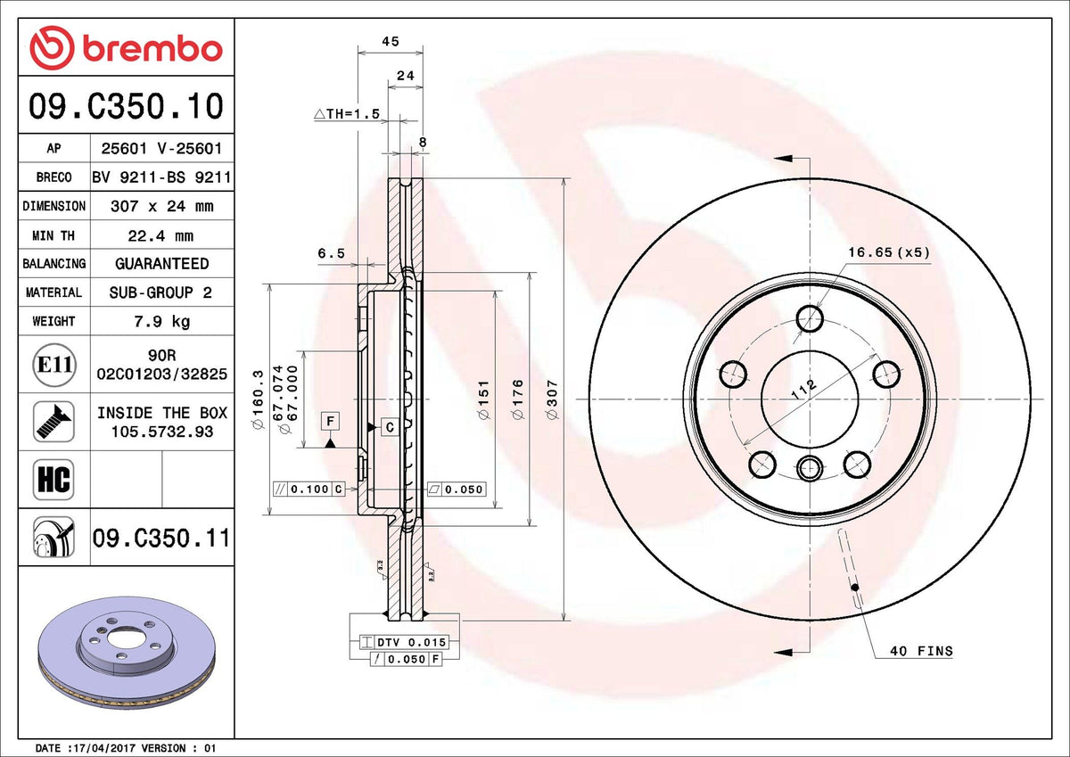 Brake Disc - 09.C350.11