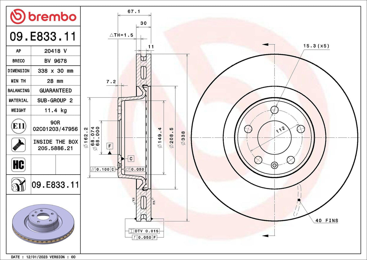 Brake Disc - 09.E833.11