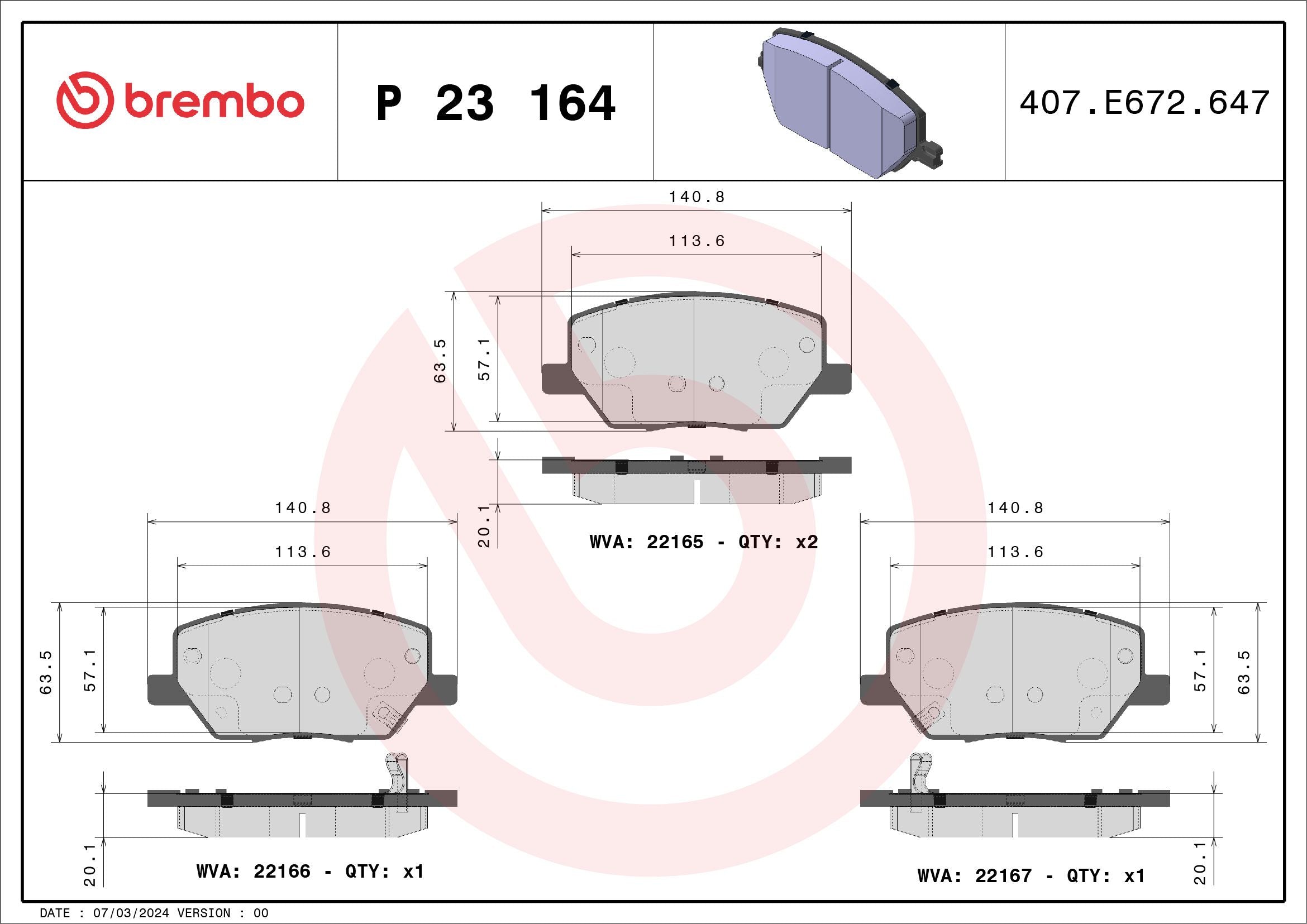 Brake Pad Set, disc brake - P 23 164