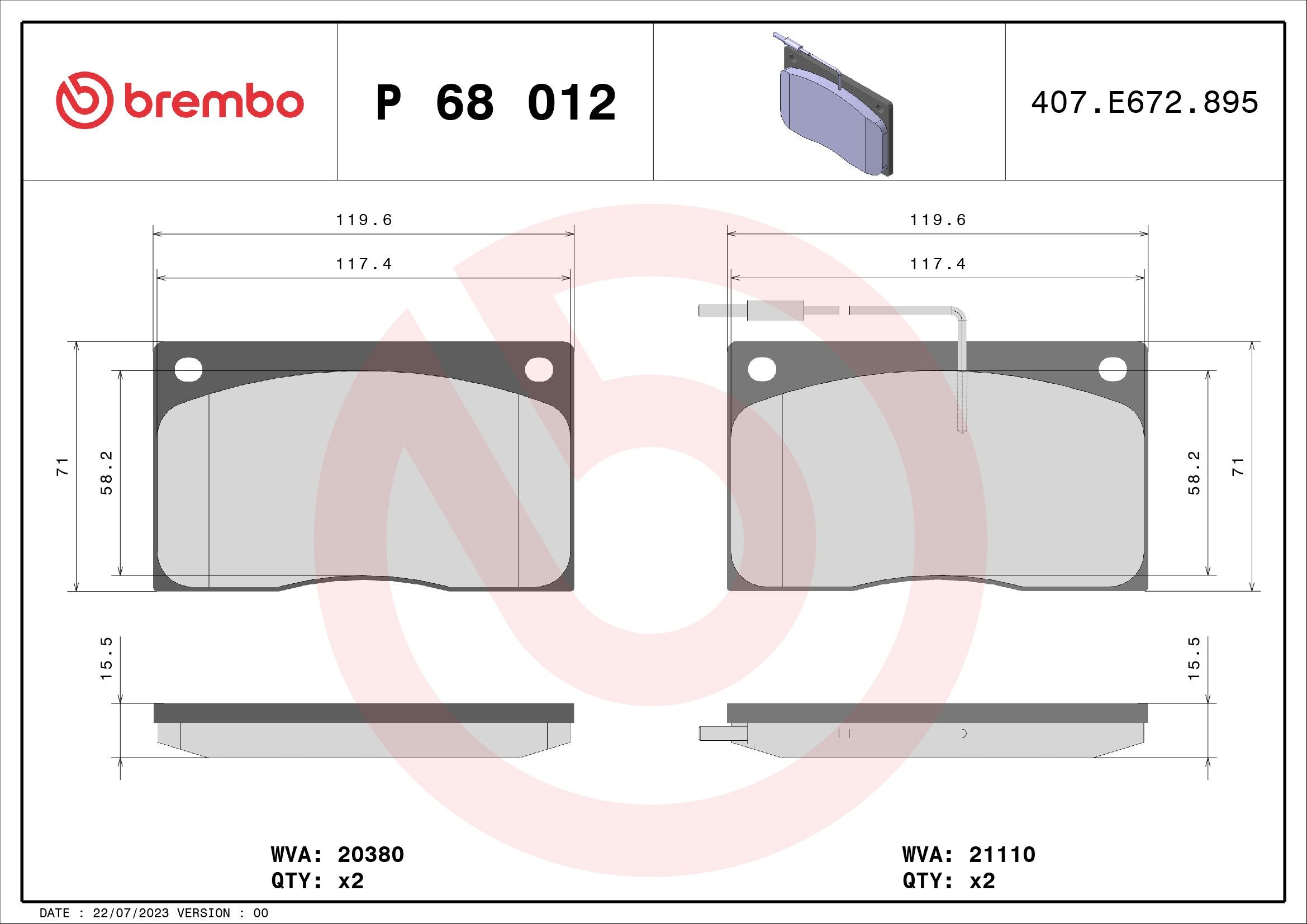 Brake Pad Set, disc brake - P 68 012